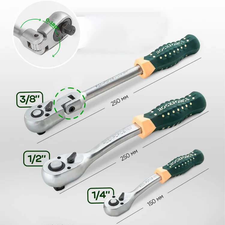 Επαγγελματικό σετ καρυδακίων και μυτών 202+2 τεμαχίων ROCKFORCE – εξαιρετική αντοχή χάρη στον χάλυβα χρωμίου-βαναδίου.