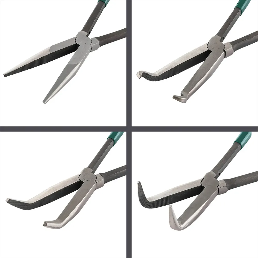 Το σετ περιλαμβάνει 4 διαφορετικούς τύπους πενσών – ίσιες, 45°, 90° και πένσα για σωλήνες (hose plier), τακτοποιημένες σε πρακτική υφασμάτινη θήκη για εύκολη αποθήκευση και μεταφορά.