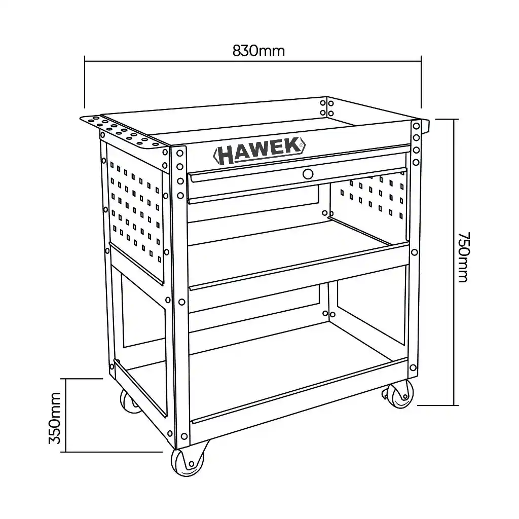 Καρότσι εργαλείων με 3 ράφια και 1 συρτάρι HAWEK