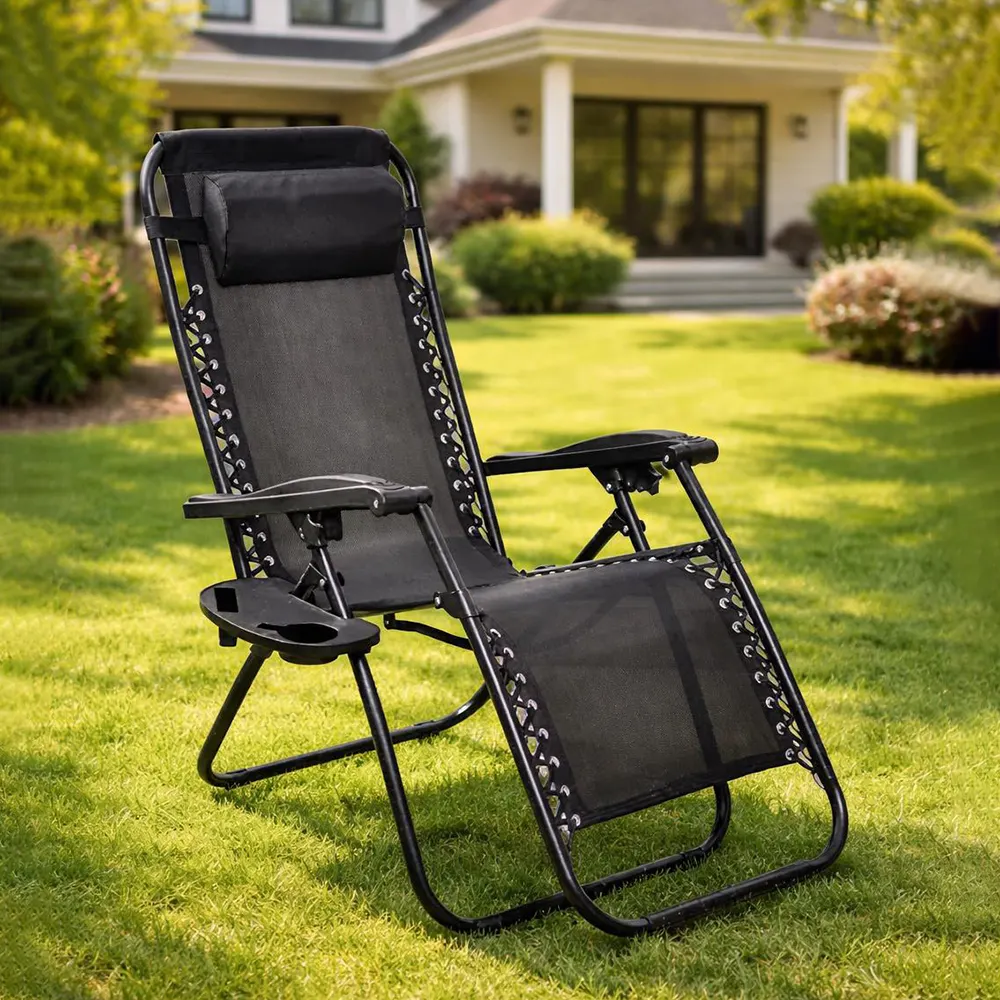 Πτυσσόμενη καρέκλα – ξαπλώστρα με βάση για ποτήρι και κινητό τηλέφωνο