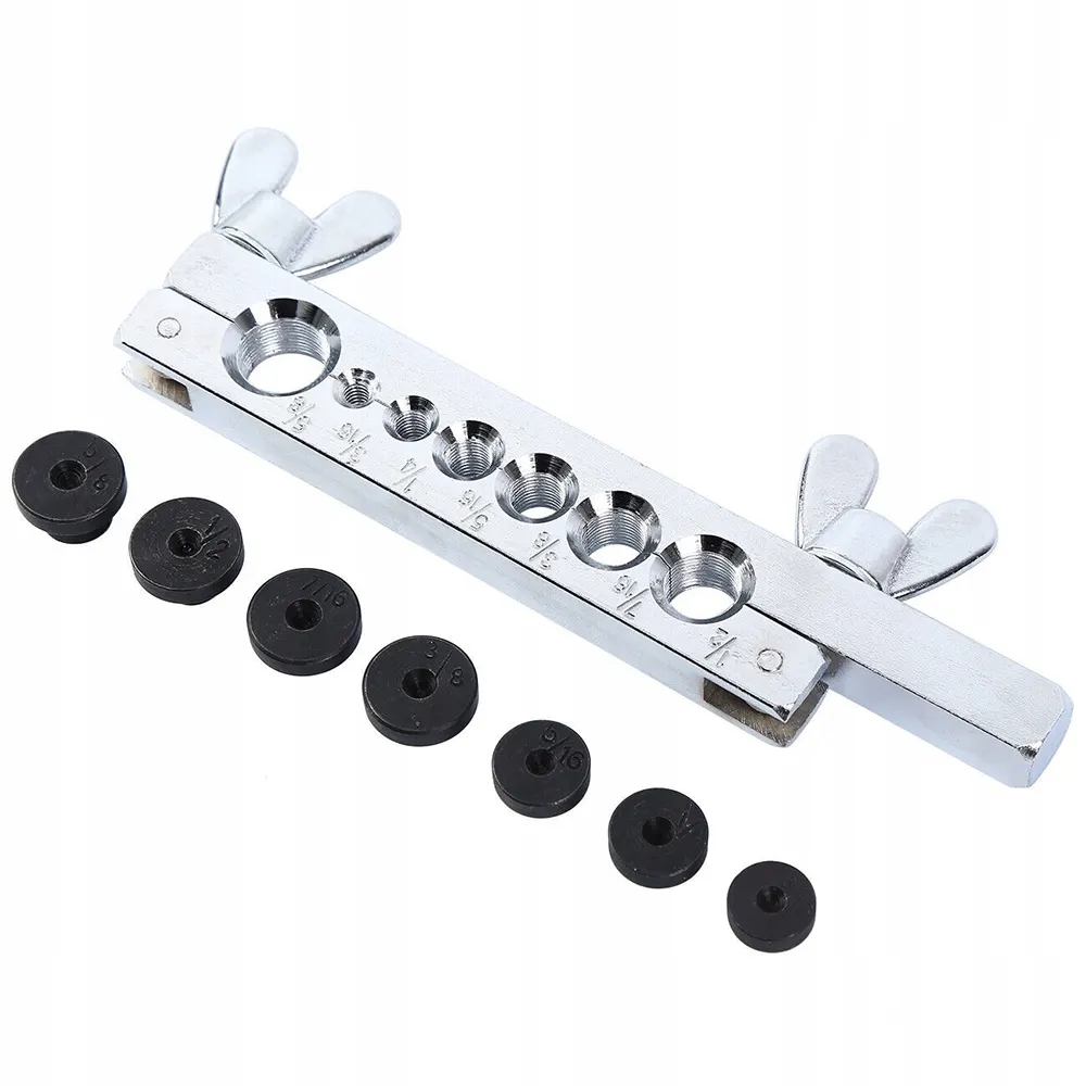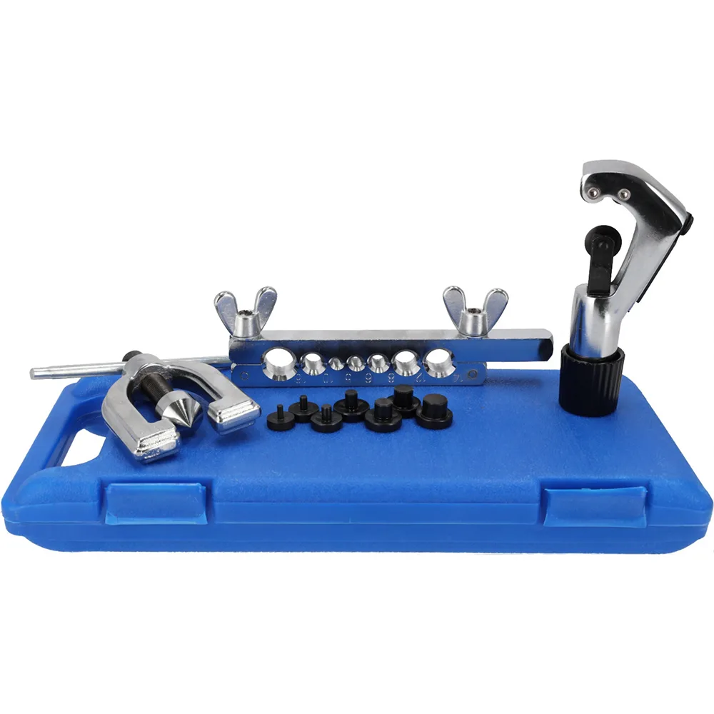 Η κωνική πλάκα εξασφαλίζει ακριβή και ομοιόμορφη διεύρυνση υπό γωνία 45°, γεγονός που εγγυάται αξιόπιστη και στεγανή σύνδεση των σωλήνων. Το σετ περιλαμβάνει διάφορους αντάπτορες, συμβατούς με τα πιο συνηθισμένα μεγέθη σωλήνων, καθώς και κόφτη για καθαρή και ακριβή κοπή.