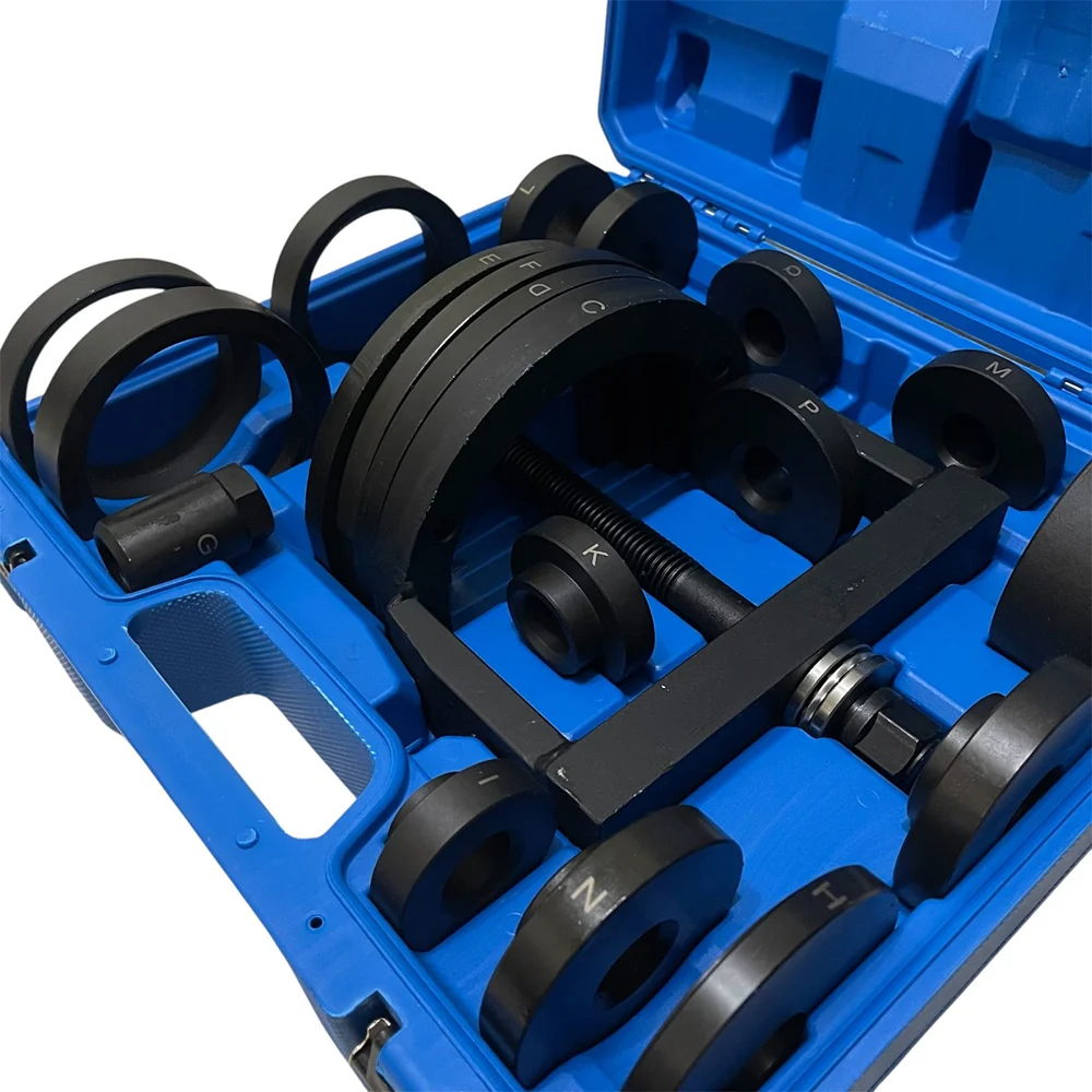 Το σετ περιλαμβάνει διάφορες πλάκες πίεσης σε διαφορετικά μεγέθη, επιτρέποντας τη χρήση με ρουλεμάν διαφόρων διαμέτρων. Χάρη στη συσκευή κεντραρίσματος, η βίδα τοποθετείται πάντα σωστά, εξασφαλίζοντας ακρίβεια και σταθερότητα κατά την εργασία.