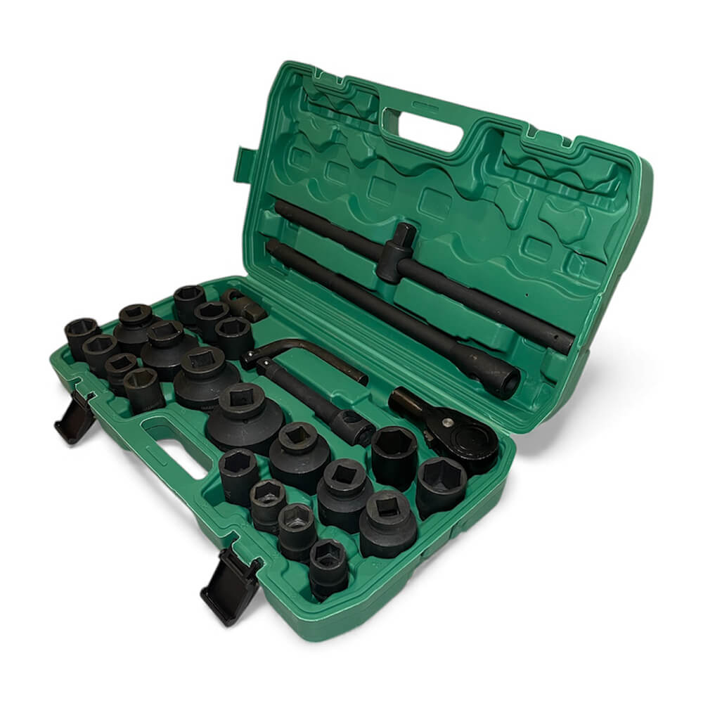 Σετ εργαλείων για φορτηγά 26 μέρη 3 / 4″ & 1″ είναι με πρακτική, στιβαρή βαλίτσα για άνετη αποθήκευση και μεταφορά.