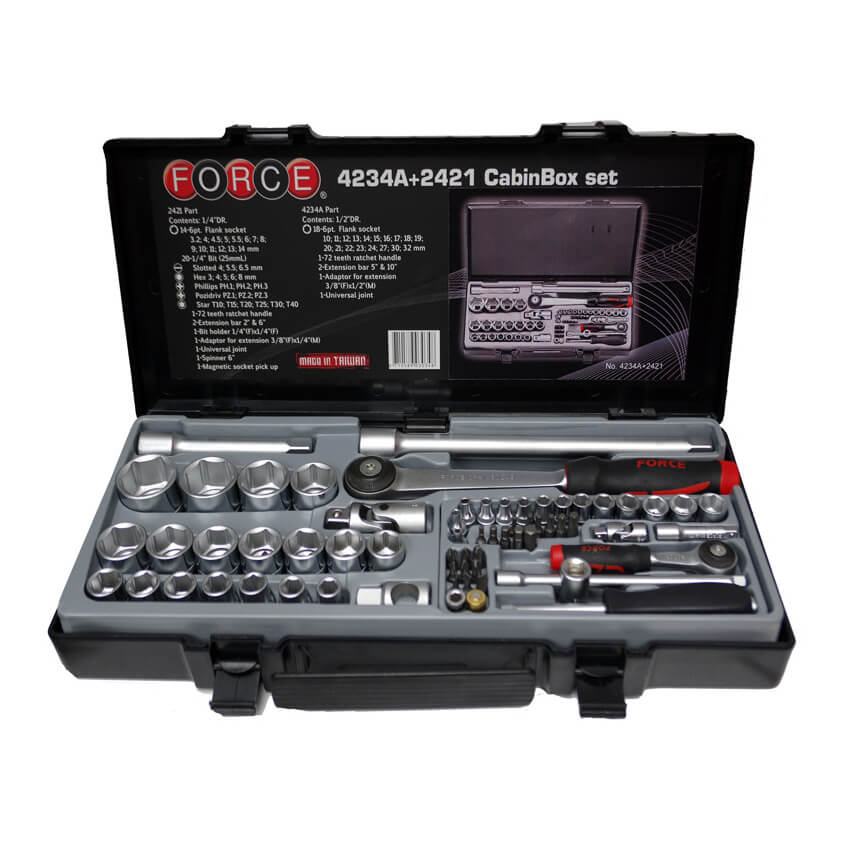 Σετ καρυδάκια 65 τεμαχίων 1/4″ & 1/2″ εξάγωνα FORCE