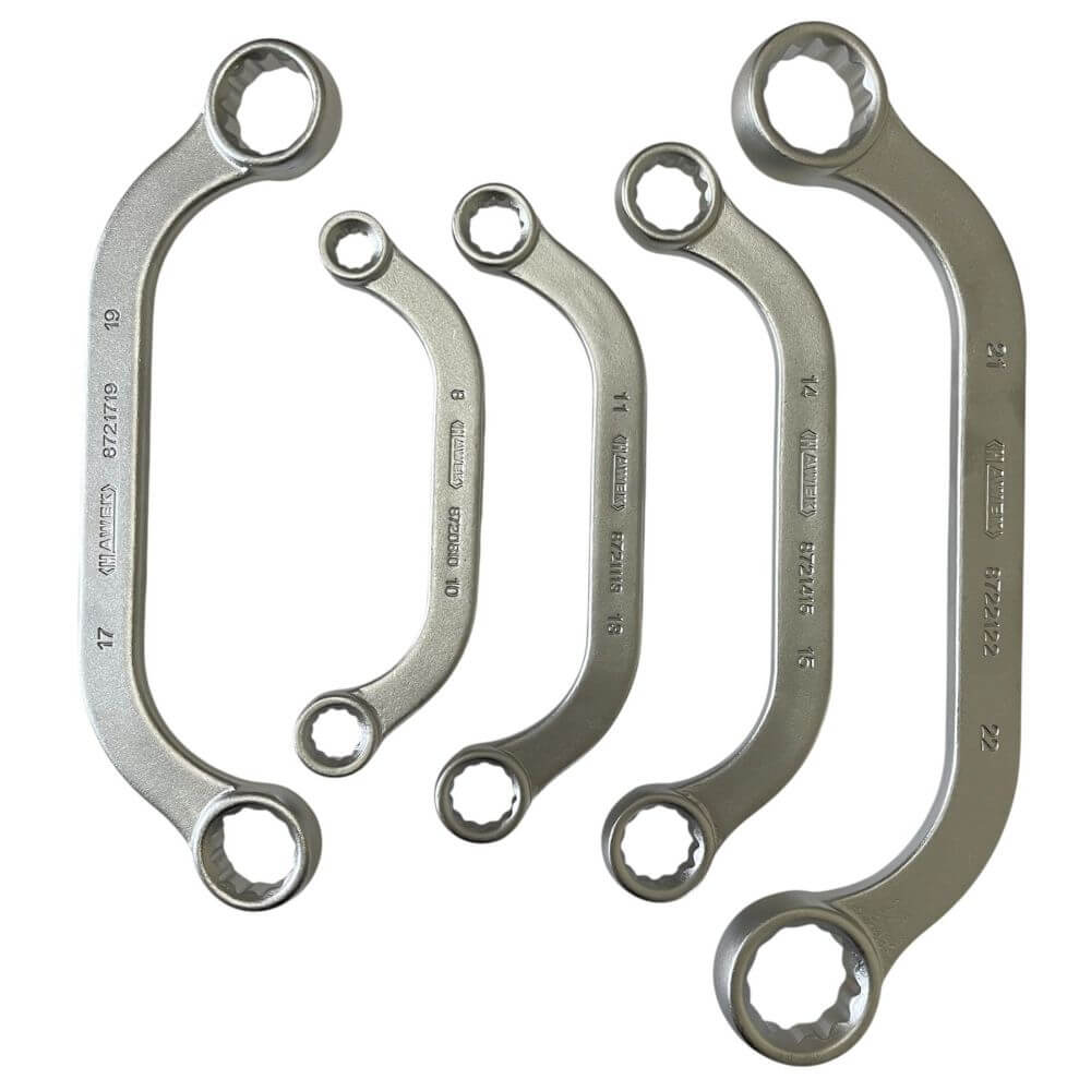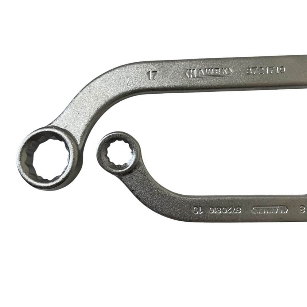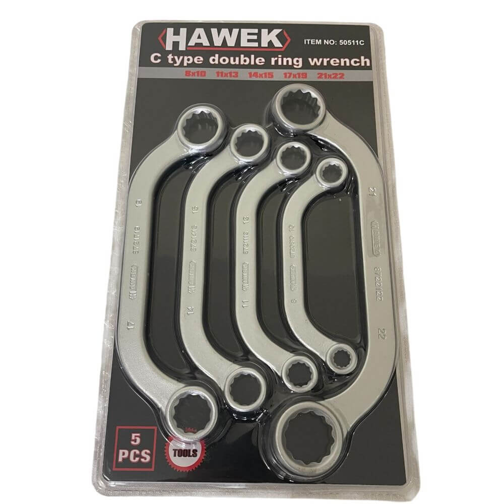 Ψάχνετε για αξιόπιστο και ανθεκτικό εργαλείο για εργασία σε δύσκολες και στενές θέσεις; Σας παρουσιάζουμε το επαγγελματικό σετ διπλών καμπυλωτών κλειδιών τύπου «αστέρι» HAWEK, σχεδιασμένο για εντατική χρήση σε συνεργεία και γκαράζ. Κατασκευασμένα από υψηλής ποιότητας χρώμιο-βανάδιο ατσάλι (Cr-V), αυτά τα ακριβή διπλά καμπυλωτά κλειδιά προσφέρουν αντοχή, σταθερότητα και άνεση σε κάθε εργασία.