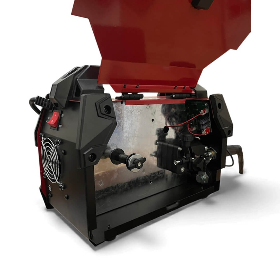 Ο μηχανισμός επιτρέπει συγκόλληση με σύρμα χωρίς CO₂, διευκολύνοντας σημαντικά την εργασία και καθιστώντας τον κατάλληλο για όλες τις συνθήκες. Λειτουργεί με ρολά σύρματος 1 κιλού και υποστηρίζει μεγέθη 0,6 / 0,8 / 1,0 / 1,2 mm. Οι ενσωματωμένες λειτουργίες εξασφαλίζουν σταθερό ηλεκτρικό τόξο, ομαλή ρύθμιση ρεύματος και εξαιρετικά αποτελέσματα συγκόλλησης.